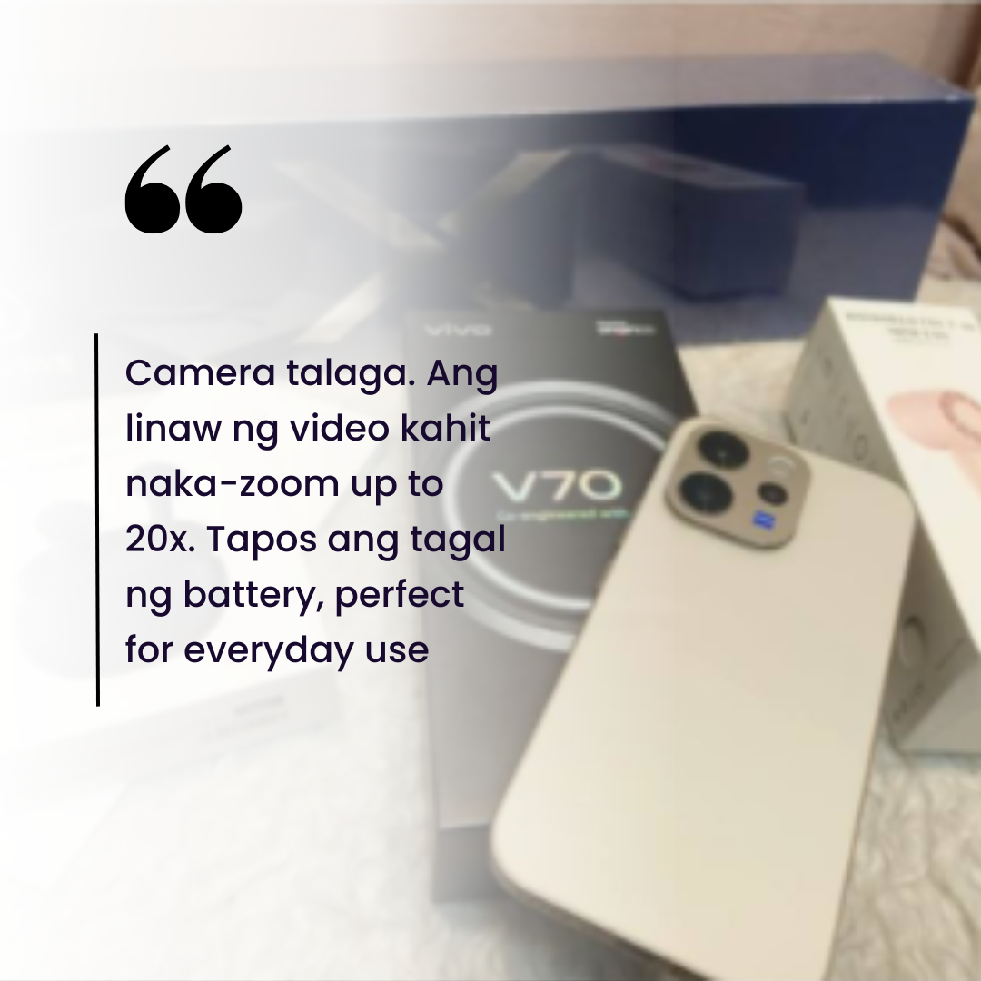 Lorlyn Romano, a small business owner from Sta. Rosa, Laguna, upgraded from the V60 to the V70 because of its better 50MP ZEISS Super Telephoto Camera, equipped with AI features.