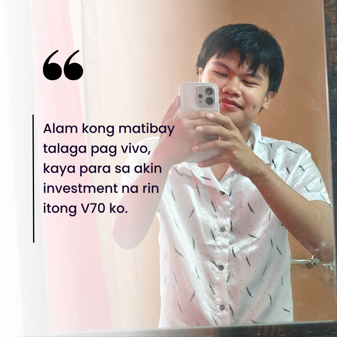 Having used vivo Y series devices over the years, reliability played a key role in his decision. He said, “Alam kong matibay talaga pag vivo, kaya para sa akin investment na rin itong V70 ko.”