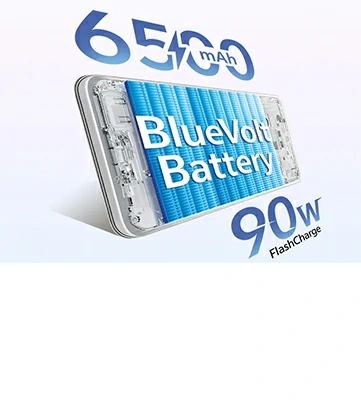V50 Lite 5G’s 6500 mAh BlueVolt Battery ensures longer-lasting performance in a sleek and compact form.