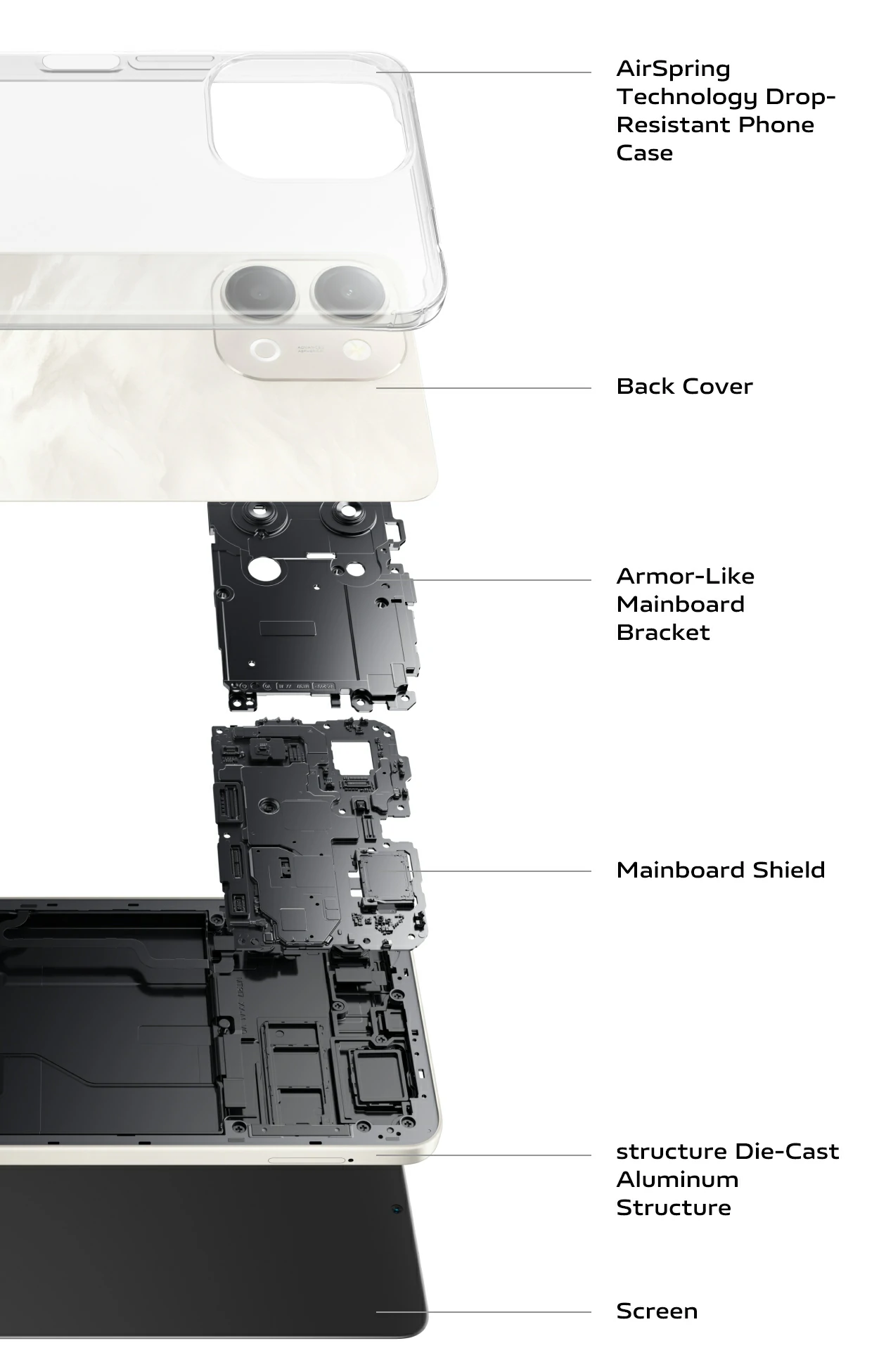 - Data is obtained from vivo laboratory under single-app usage or standby conditions. Test environment: ambient temperature of 25°C±1°C. Test conditions: device fully charged, screen brightness of 150 nits, maximum volume, and 4G network. Actual battery life may vary with usage habits and environment.